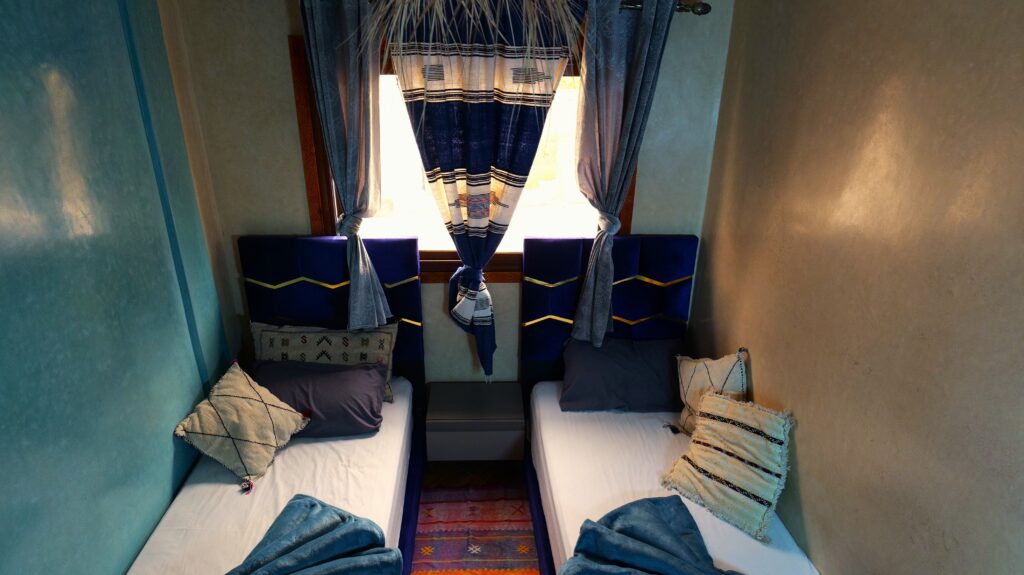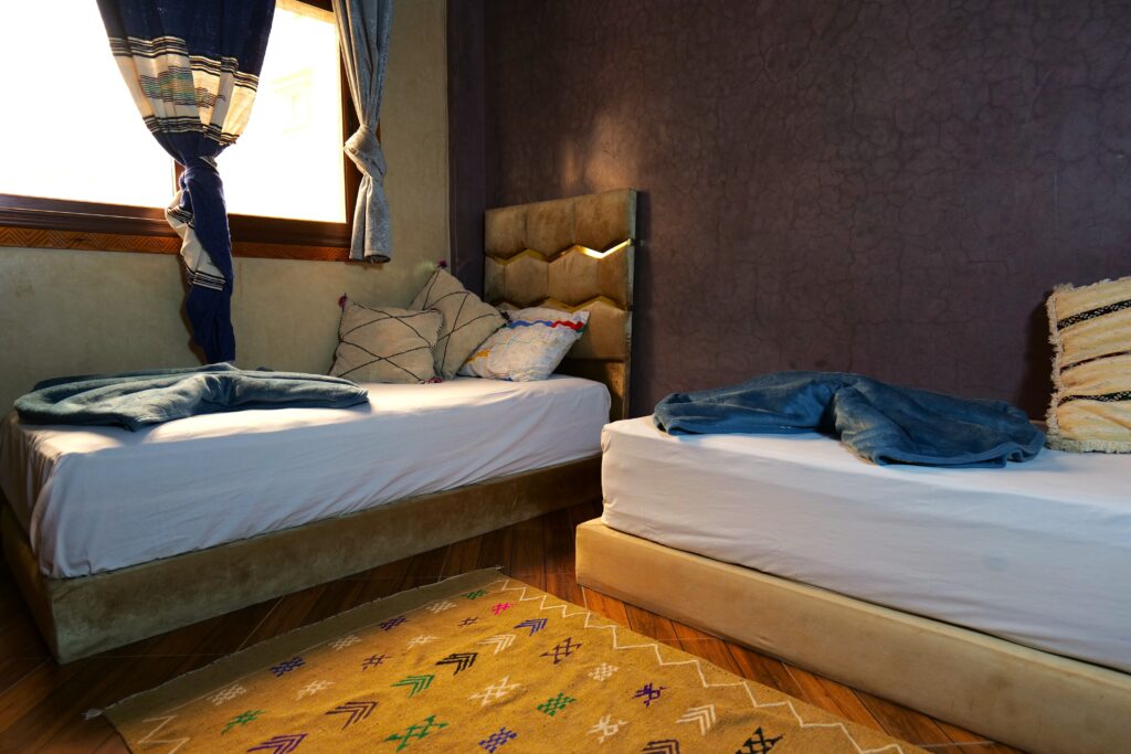 Nomad Nest is our vibrant 8-bed mixed dorm, designed for travelers who love community and connection. With cozy bunk beds, shared facilities, and a friendly atmosphere, it’s the perfect choice for backpackers looking for affordable comfort in Tamraght
